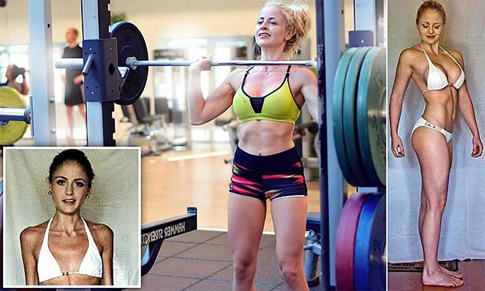 İsveç’in Kalmar kentinden 23 yaşındaki Linn Strömberg, anoreksiya ile savaşının zirvesindeyken ölümle burun buruna geldi. Şimdi Linn halter sayesinde tamamen iyileşti. Yukarıda: Linn artık formunu korumak için spor salonunda ağırlık kaldırıyor.