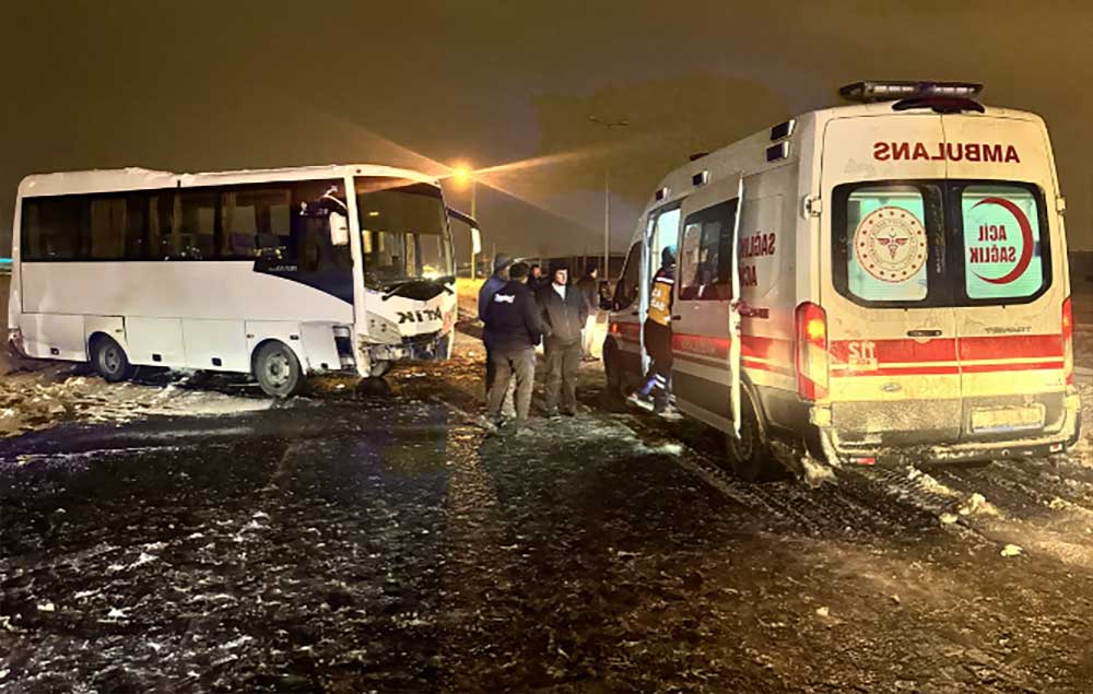 Çarpışmanın şiddetiyle araçlar birbirine girerken, otobüs ve servis içerisinde bulunan çok sayıda kişi yaralandı.